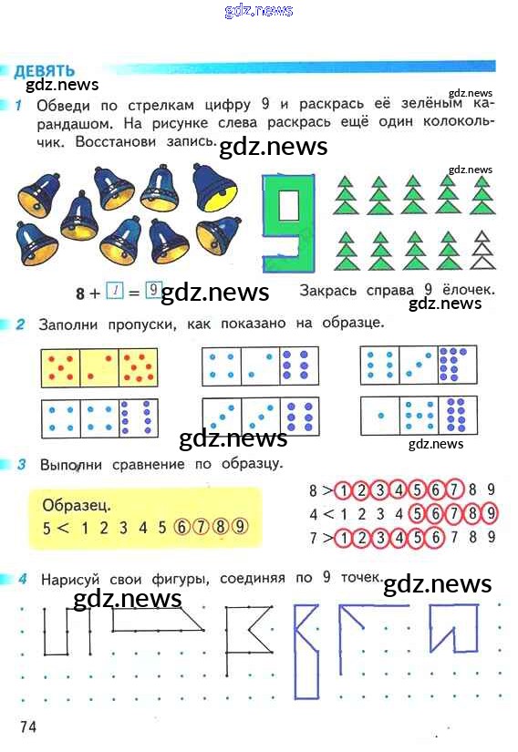 ГДЗ по Математике за 1 класс Дорофеев, Миракова Рабочая тетрадь Перспектива - Часть 1 74