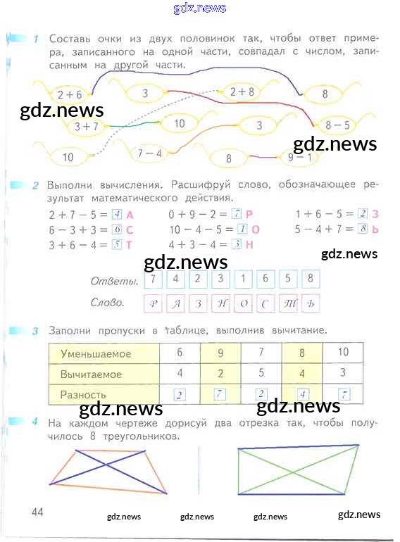 ГДЗ по Математике за 1 класс Дорофеев, Миракова Рабочая тетрадь Перспектива - Часть 2 44
