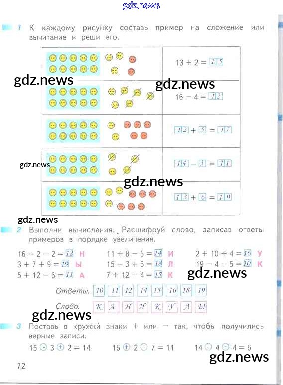 ГДЗ по Математике за 1 класс Дорофеев, Миракова Рабочая тетрадь Перспектива - Часть 2 72