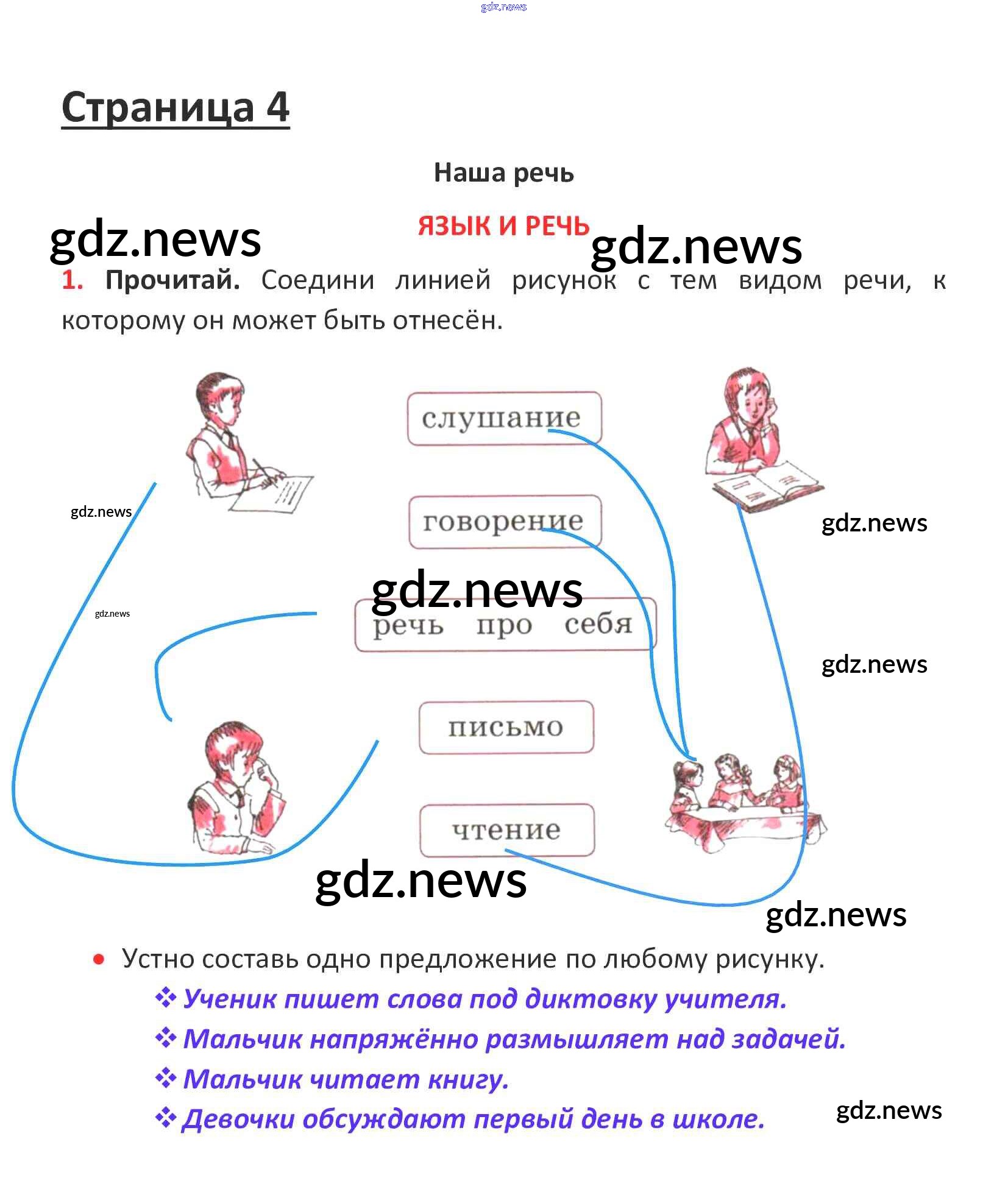 ГДЗ по Русскому языку за 1 класс Канакина, Горецкий Рабочая тетрадь Школа России - Глава 1. Наша речь стр. 4