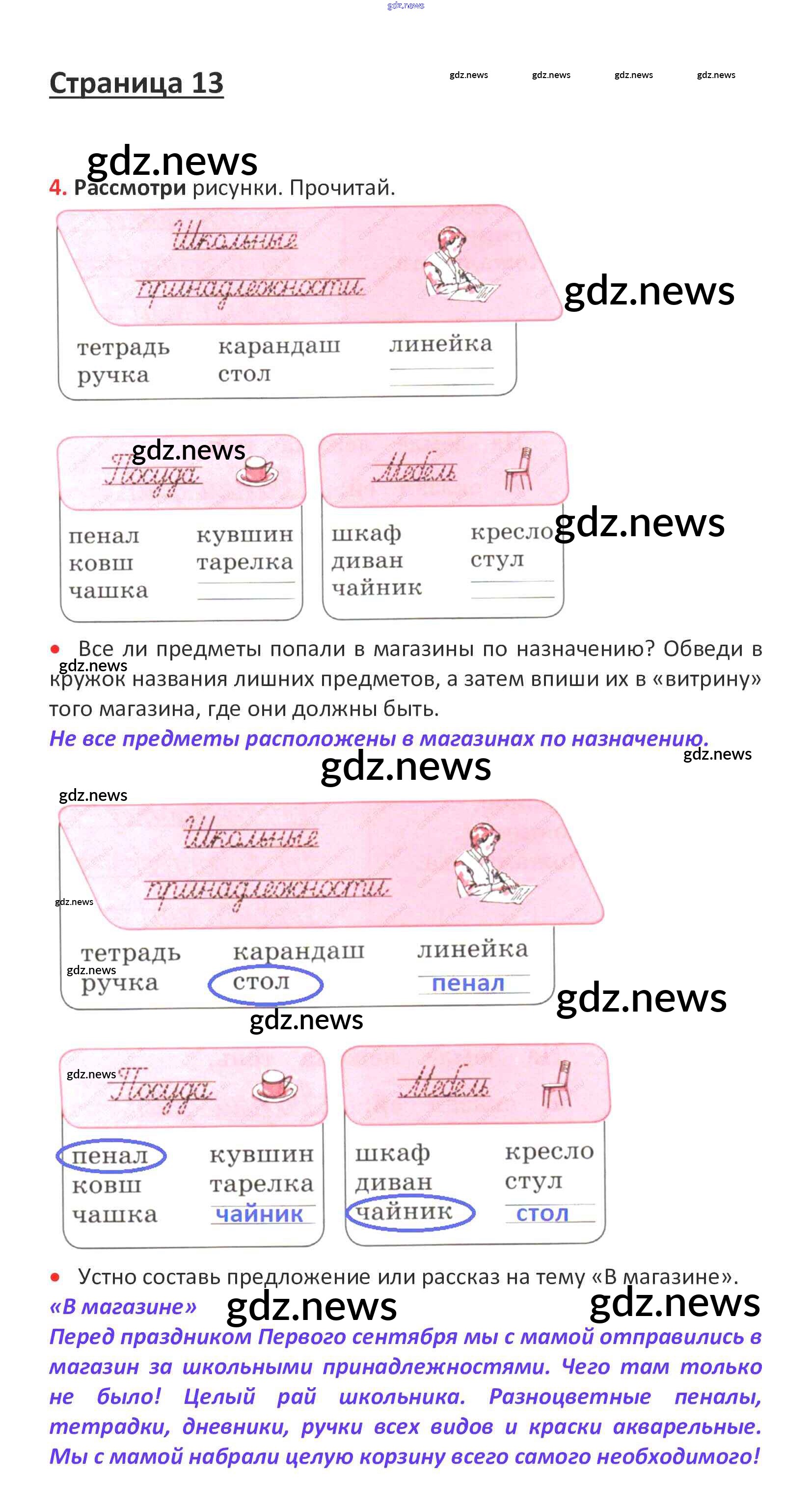 ГДЗ по Русскому языку за 1 класс Канакина, Горецкий Рабочая тетрадь Школа России - Глава 3. Слова, слова, слова... стр. 13