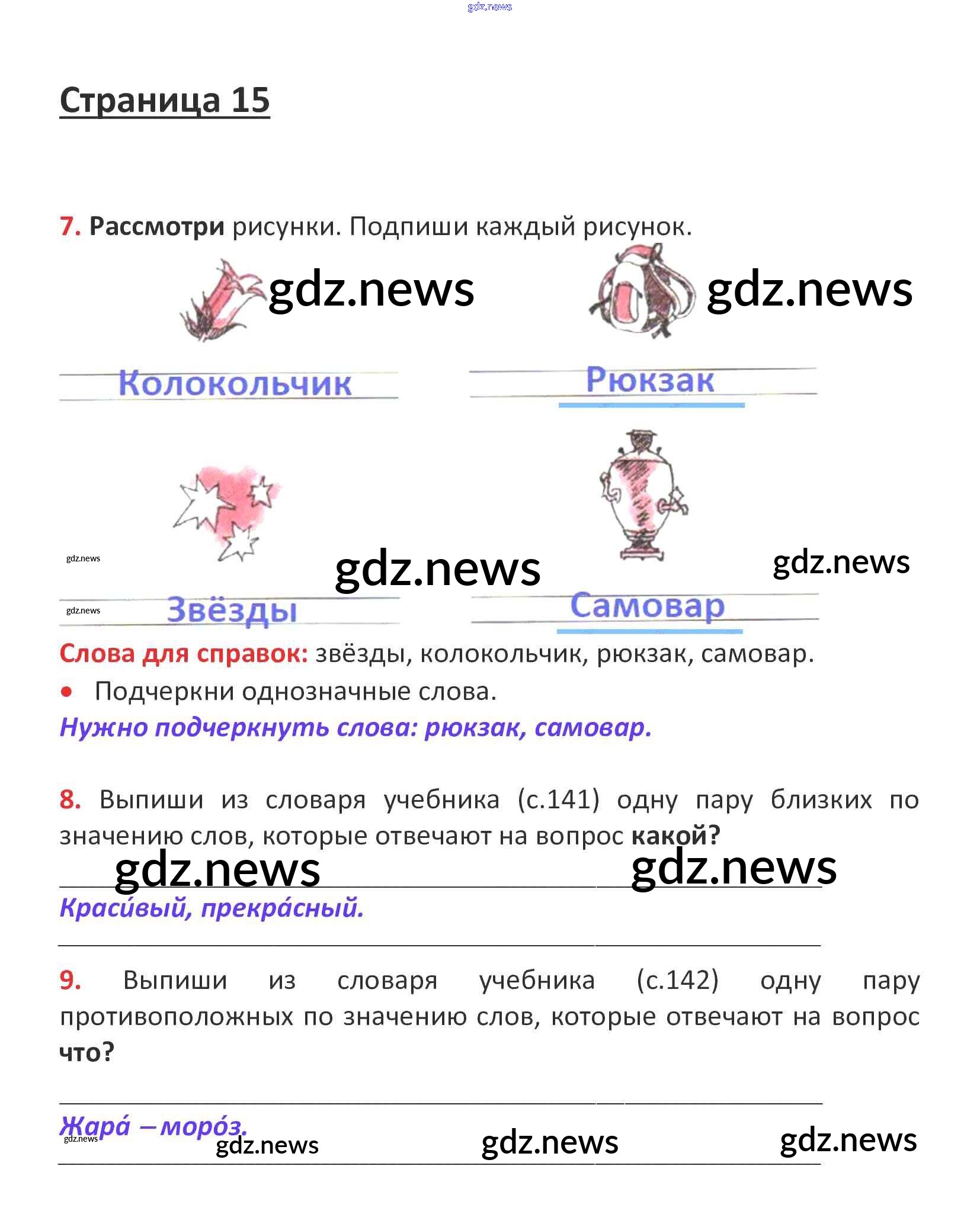 ГДЗ по Русскому языку за 1 класс Канакина, Горецкий Рабочая тетрадь Школа России - Глава 3. Слова, слова, слова... стр. 15