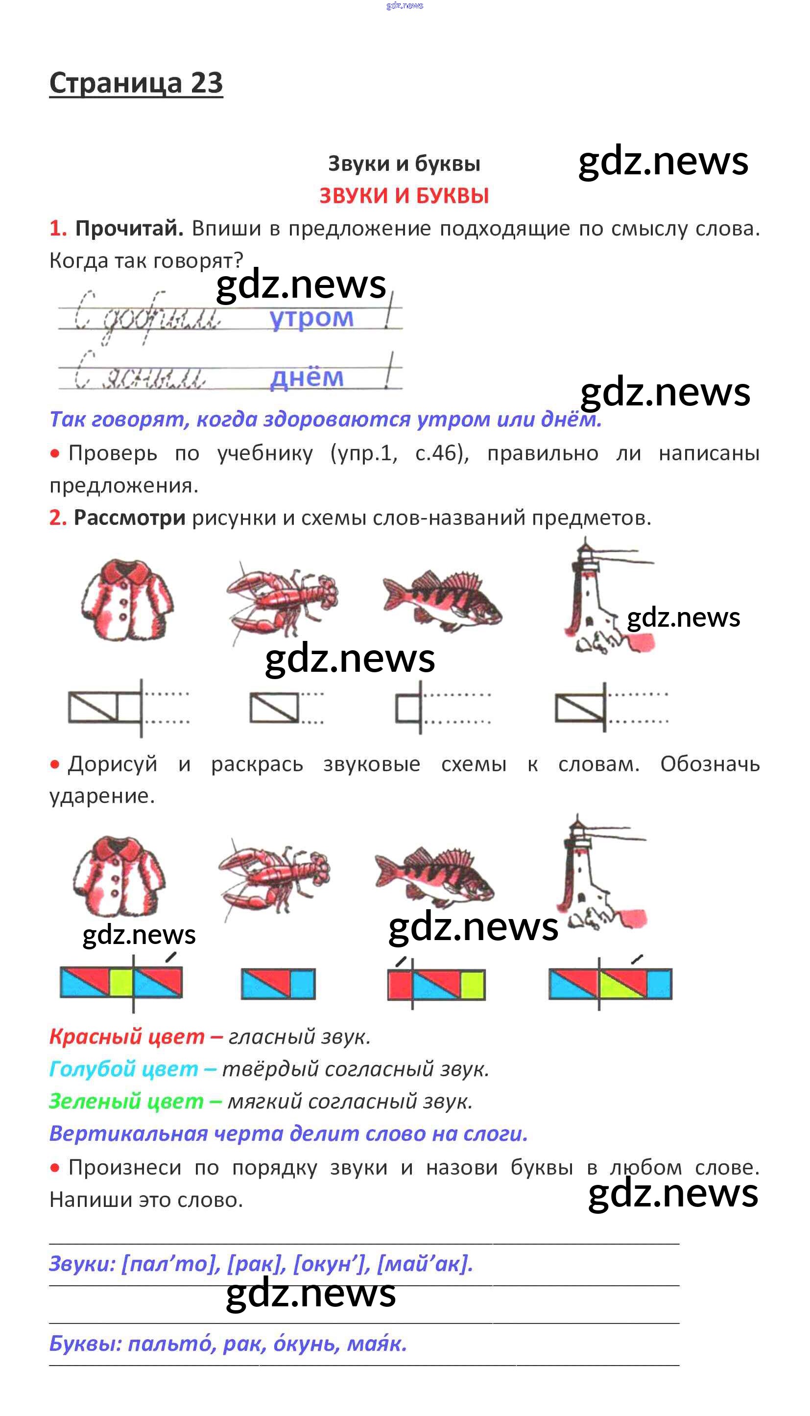 ГДЗ по Русскому языку за 1 класс Канакина, Горецкий Рабочая тетрадь Школа России - Глава 5. Звуки и буквы стр. 23
