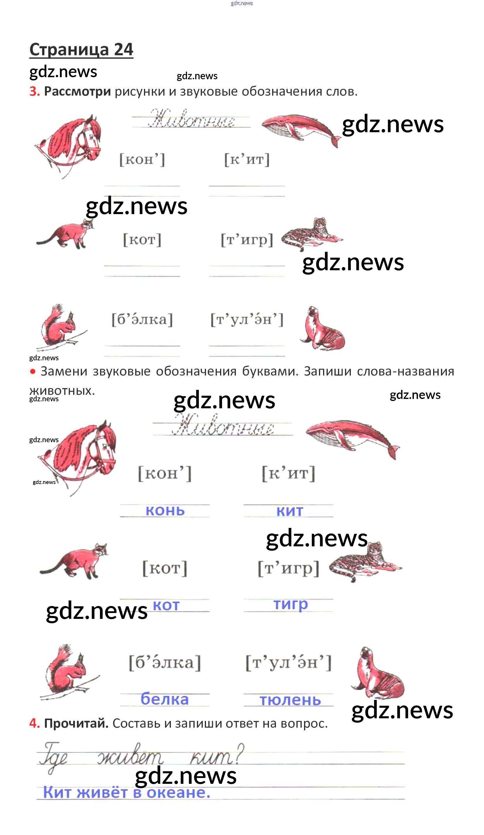 ГДЗ по Русскому языку за 1 класс Канакина, Горецкий Рабочая тетрадь Школа России - Глава 5. Звуки и буквы стр. 24