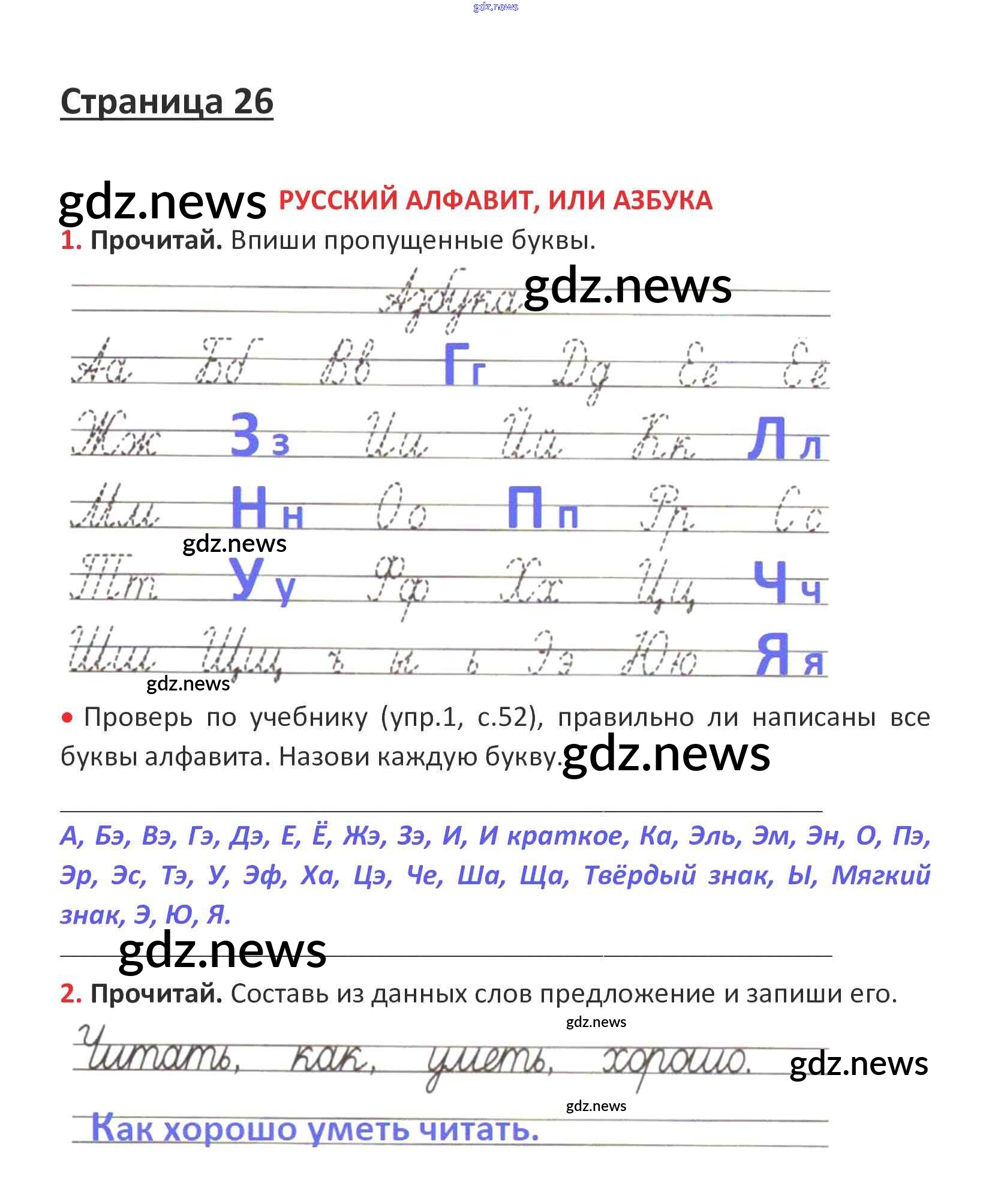 ГДЗ по Русскому языку за 1 класс Канакина, Горецкий Рабочая тетрадь Школа России - Глава 5. Звуки и буквы стр. 26