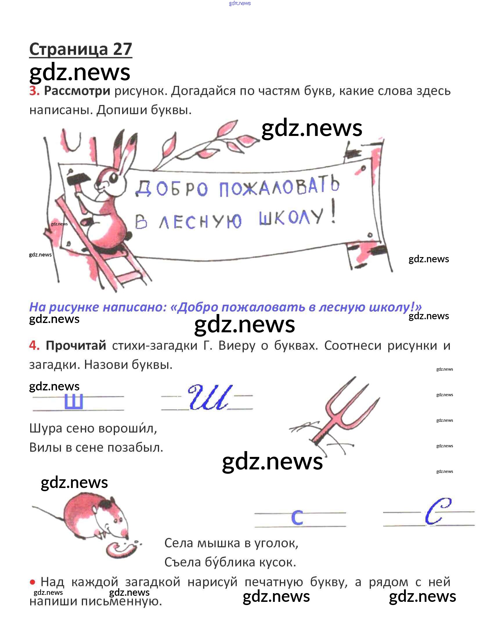 ГДЗ по Русскому языку за 1 класс Канакина, Горецкий Рабочая тетрадь Школа России - Глава 5. Звуки и буквы стр. 27
