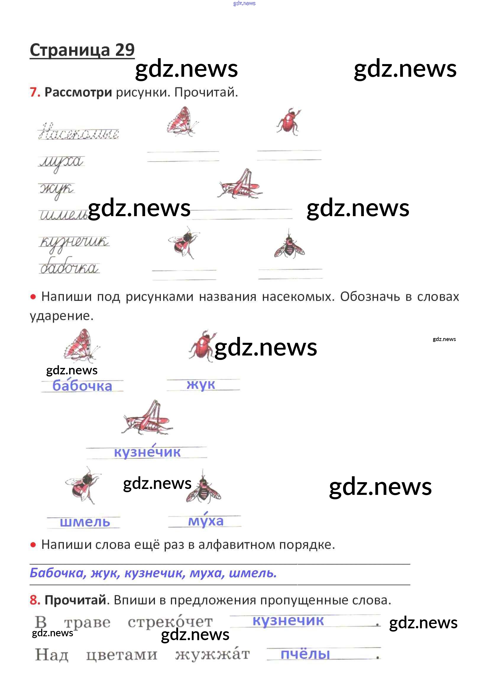 ГДЗ по Русскому языку за 1 класс Канакина, Горецкий Рабочая тетрадь Школа России - Глава 5. Звуки и буквы стр. 29