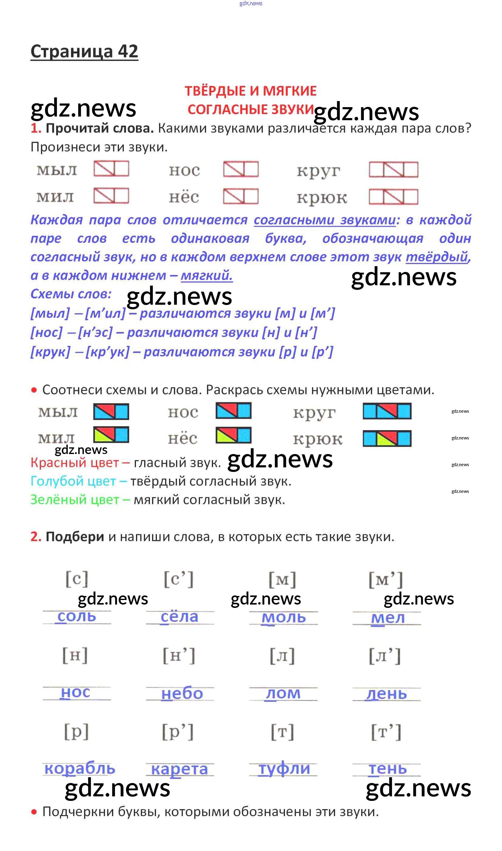 ГДЗ по Русскому языку за 1 класс Канакина, Горецкий Рабочая тетрадь Школа России - Глава 5. Звуки и буквы стр. 42