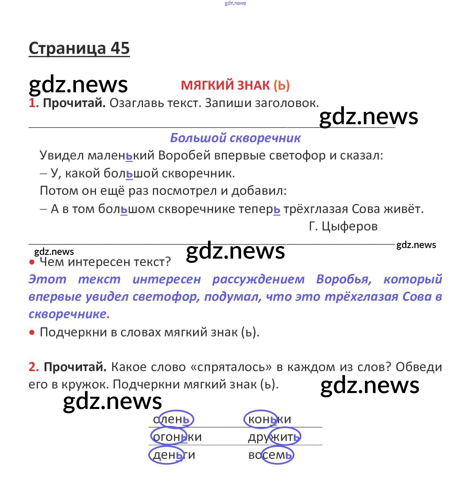 ГДЗ по Русскому языку за 1 класс Канакина, Горецкий Рабочая тетрадь Школа России - Глава 5. Звуки и буквы стр. 45