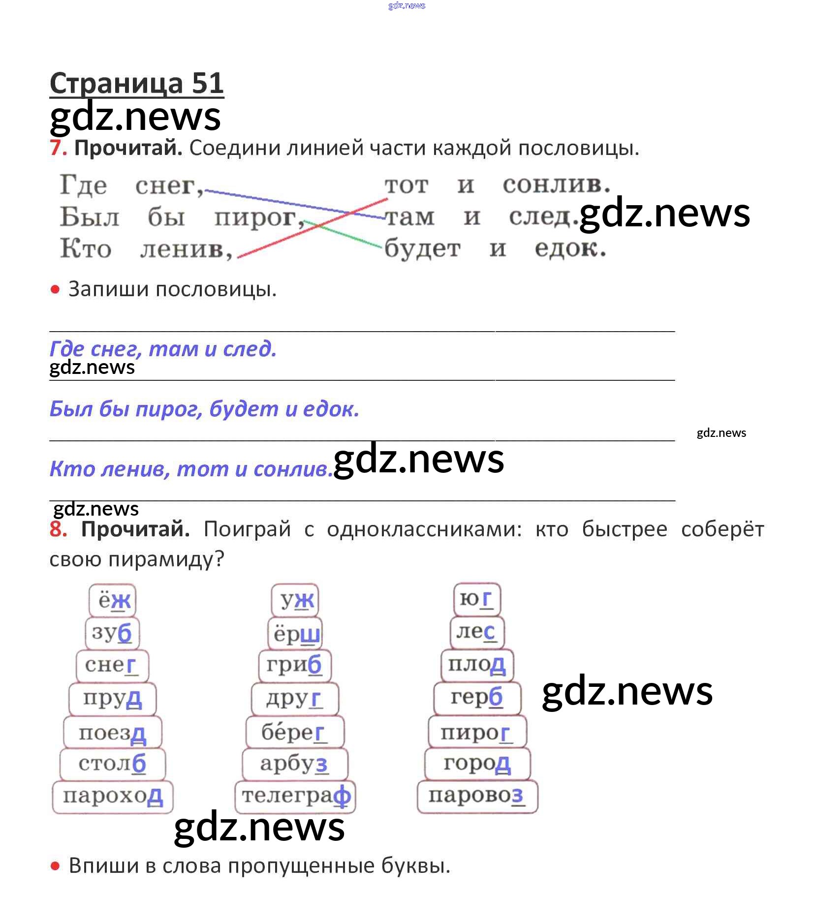 ГДЗ по Русскому языку за 1 класс Канакина, Горецкий Рабочая тетрадь Школа России - Глава 5. Звуки и буквы стр. 51