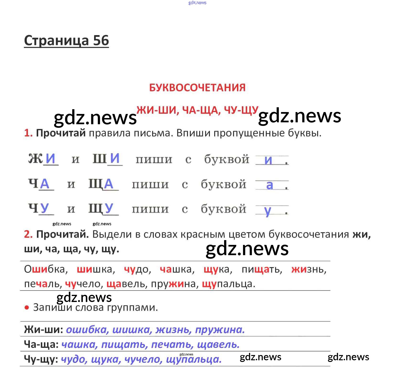 ГДЗ по Русскому языку за 1 класс Канакина, Горецкий Рабочая тетрадь Школа России - Глава 5. Звуки и буквы стр. 56