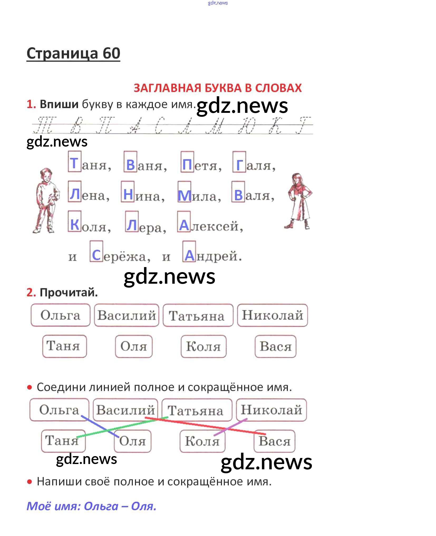 ГДЗ по Русскому языку за 1 класс Канакина, Горецкий Рабочая тетрадь Школа России - Глава 5. Звуки и буквы стр. 60