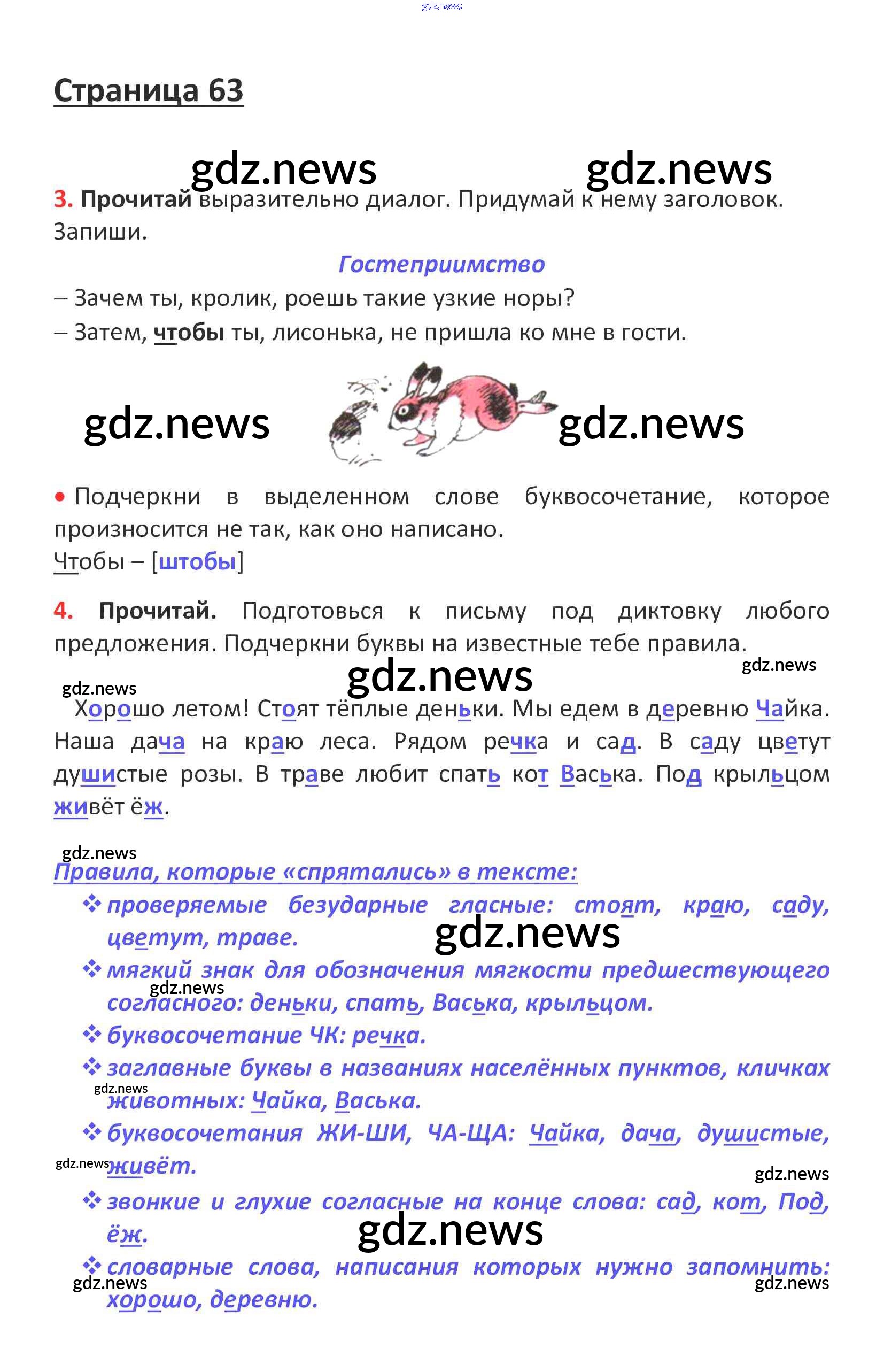 ГДЗ по Русскому языку за 1 класс Канакина, Горецкий Рабочая тетрадь Школа России - Повторение стр. 63