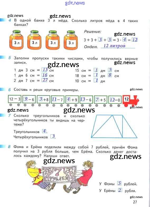 ГДЗ по Математике за 2 класс Дорофеев, Миракова Рабочая тетрадь Перспектива - Часть 1. Страницы 27
