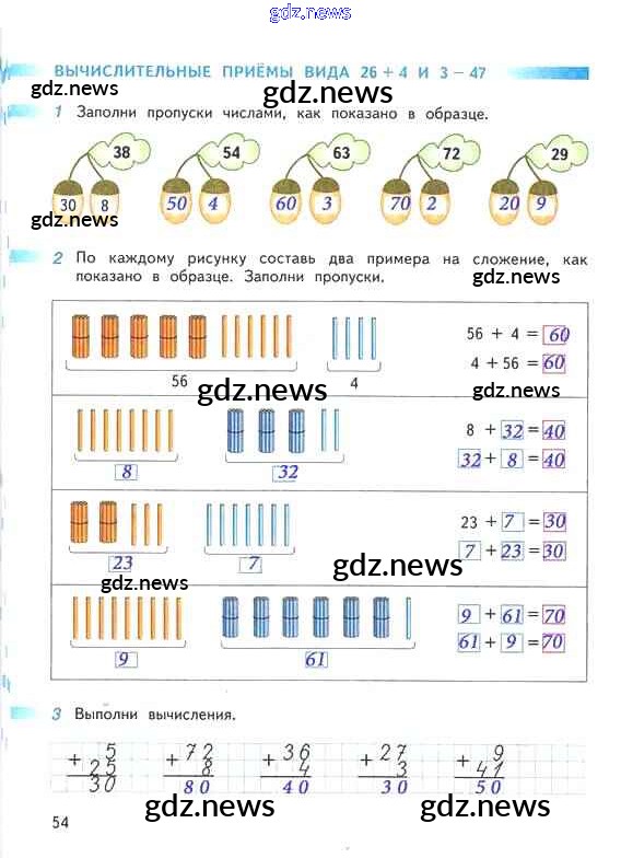 ГДЗ по Математике за 2 класс Дорофеев, Миракова Рабочая тетрадь Перспектива - Часть 2. Страницы 54