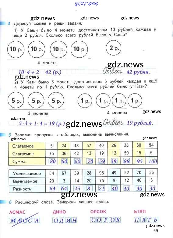 ГДЗ по Математике за 2 класс Дорофеев, Миракова Рабочая тетрадь Перспектива - Часть 2. Страницы 59