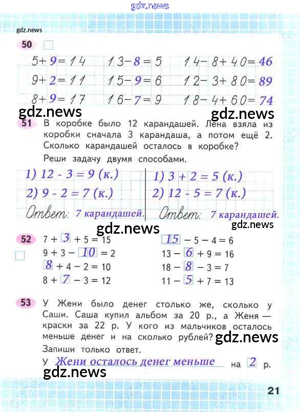 ГДЗ по Математике за 2 класс Волкова, Моро Рабочая тетрадь Школа России - Часть 1. Страницы 21