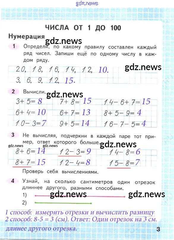 ГДЗ по Математике за 2 класс Волкова, Моро Рабочая тетрадь Школа России - Часть 1. Страницы 3