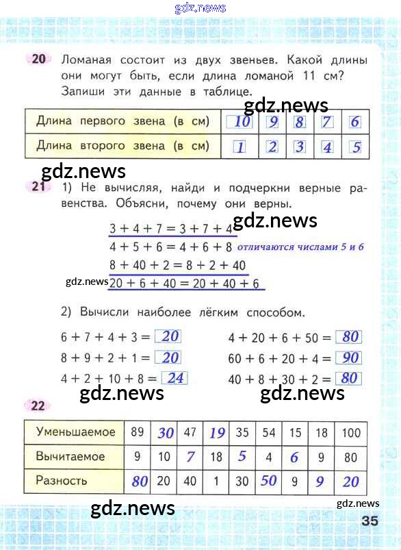 ГДЗ по Математике за 2 класс Волкова, Моро Рабочая тетрадь Школа России - Часть 1. Страницы 35
