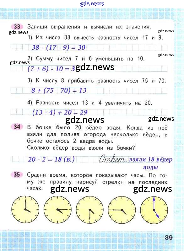 ГДЗ по Математике за 2 класс Волкова, Моро Рабочая тетрадь Школа России - Часть 1. Страницы 39