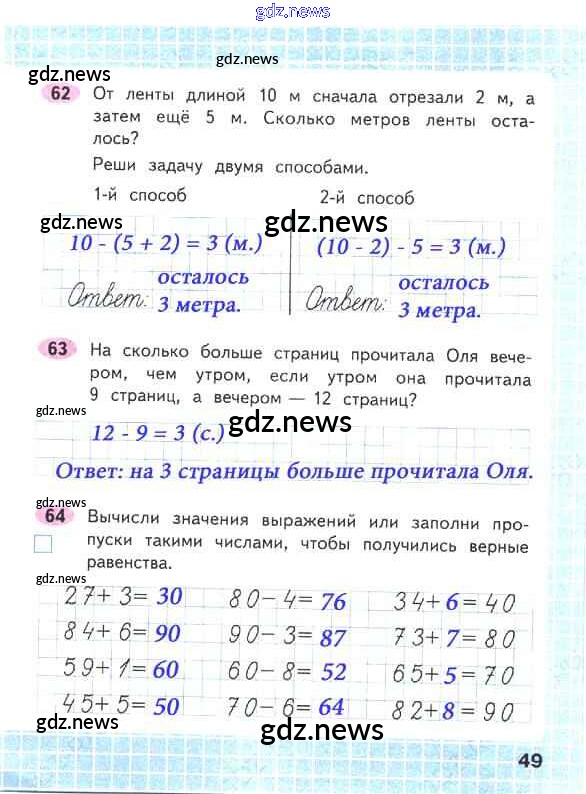 ГДЗ по Математике за 2 класс Волкова, Моро Рабочая тетрадь Школа России - Часть 1. Страницы 49