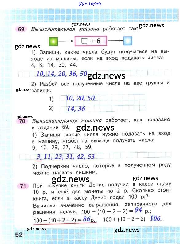 ГДЗ по Математике за 2 класс Волкова, Моро Рабочая тетрадь Школа России - Часть 1. Страницы 52