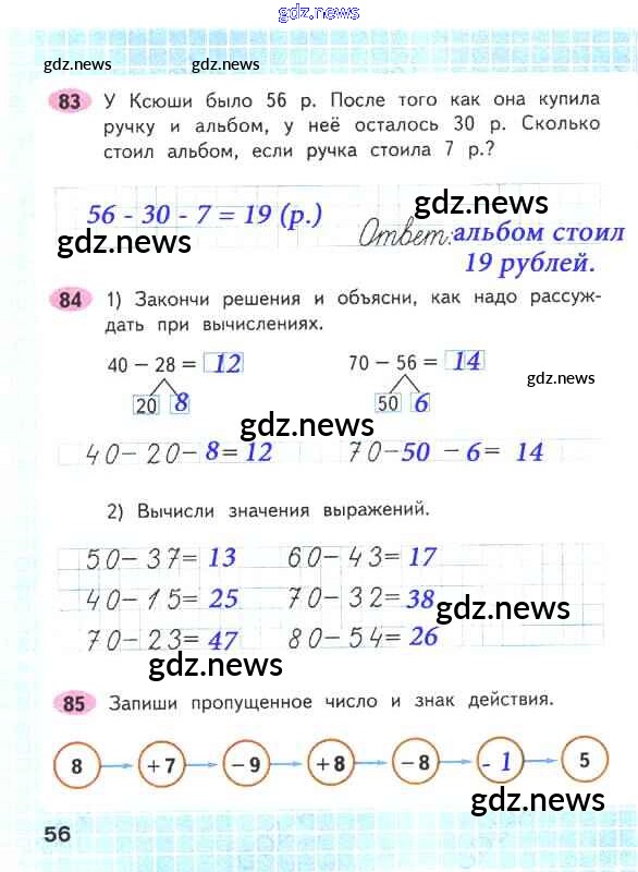 ГДЗ по Математике за 2 класс Волкова, Моро Рабочая тетрадь Школа России - Часть 1. Страницы 56