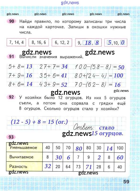ГДЗ по Математике за 2 класс Волкова, Моро Рабочая тетрадь Школа России - Часть 1. Страницы 59