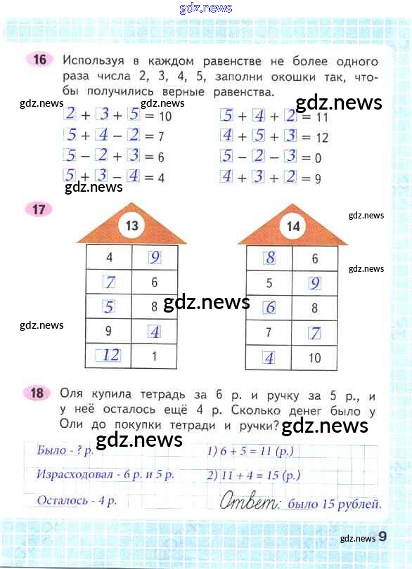 ГДЗ по Математике за 2 класс Волкова, Моро Рабочая тетрадь Школа России - Часть 1. Страницы 9