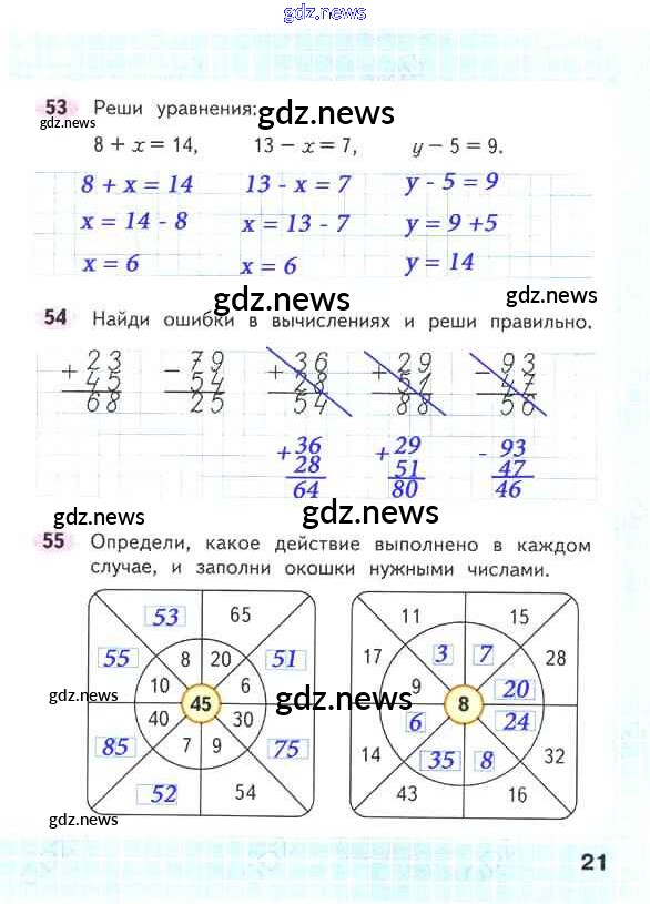 ГДЗ по Математике за 2 класс Волкова, Моро Рабочая тетрадь Школа России - Часть 2. Страницы 21