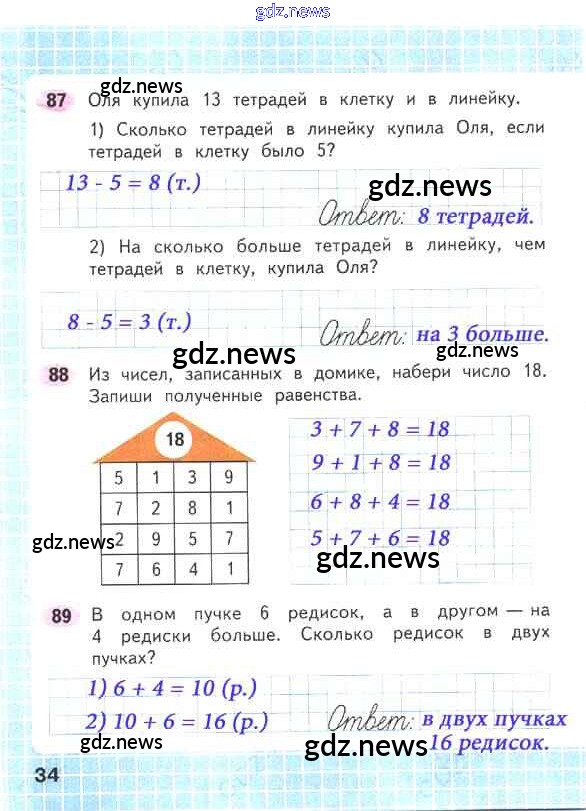 ГДЗ по Математике за 2 класс Волкова, Моро Рабочая тетрадь Школа России - Часть 2. Страницы 34
