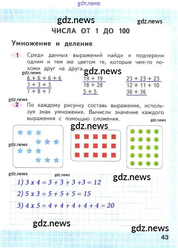 ГДЗ по Математике за 2 класс Волкова, Моро Рабочая тетрадь Школа России - Часть 2. Страницы 43