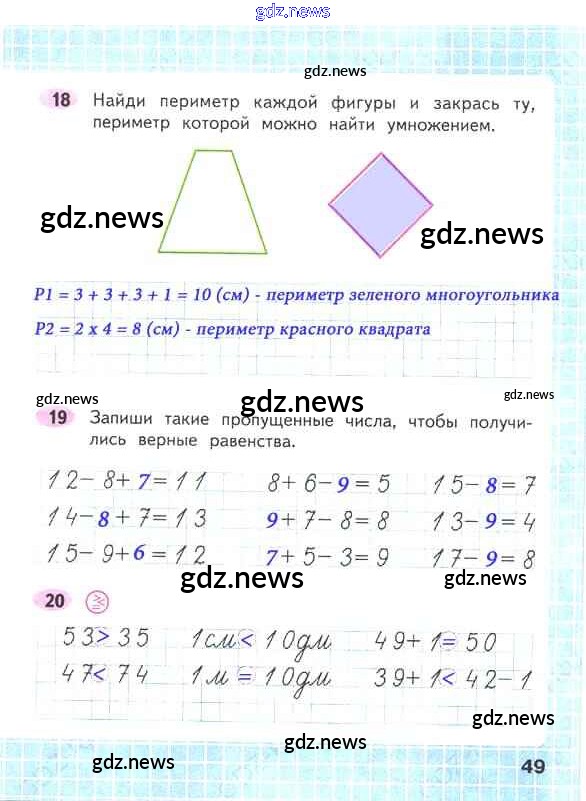 ГДЗ по Математике за 2 класс Волкова, Моро Рабочая тетрадь Школа России - Часть 2. Страницы 49