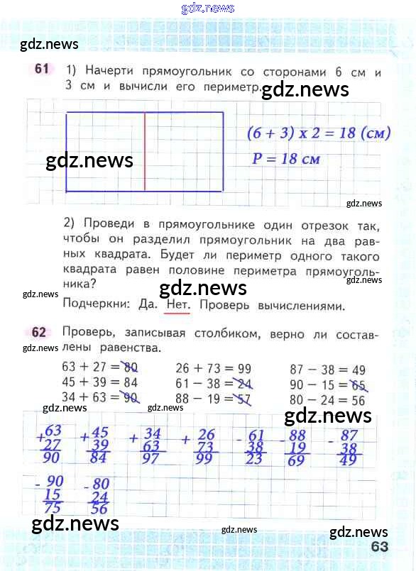 ГДЗ по Математике за 2 класс Волкова, Моро Рабочая тетрадь Школа России - Часть 2. Страницы 63