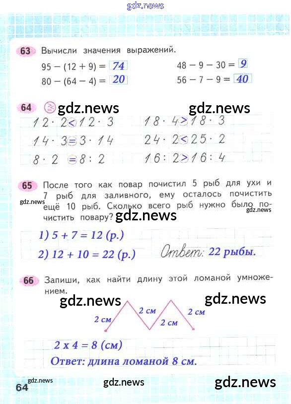 ГДЗ по Математике за 2 класс Волкова, Моро Рабочая тетрадь Школа России - Часть 2. Страницы 64