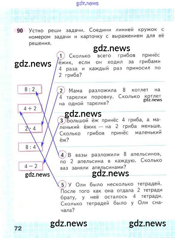 ГДЗ по Математике за 2 класс Волкова, Моро Рабочая тетрадь Школа России - Часть 2. Страницы 72