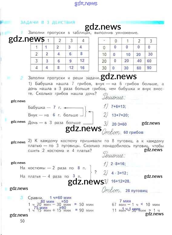 ГДЗ по Математике за 3 класс Дорофеев, Миракова Рабочая тетрадь Перспектива - Часть 1. Страницы 50