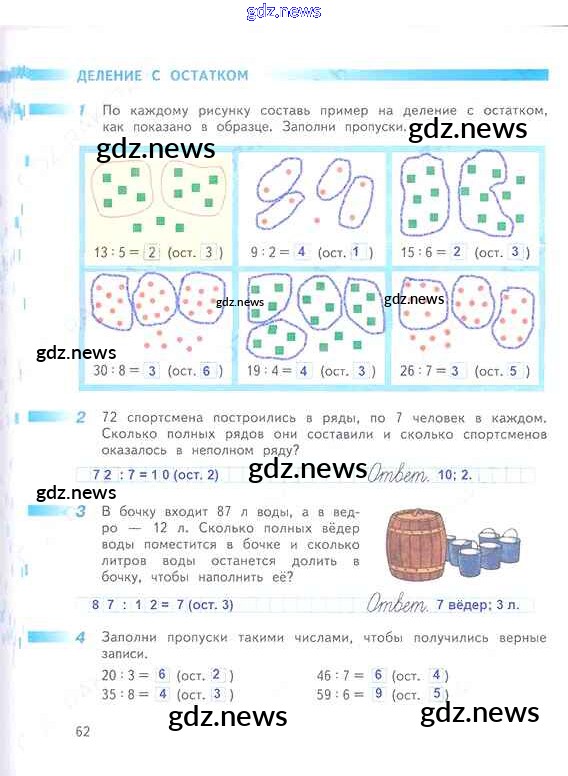 ГДЗ по Математике за 3 класс Дорофеев, Миракова Рабочая тетрадь Перспектива - Часть 2. Страницы 62
