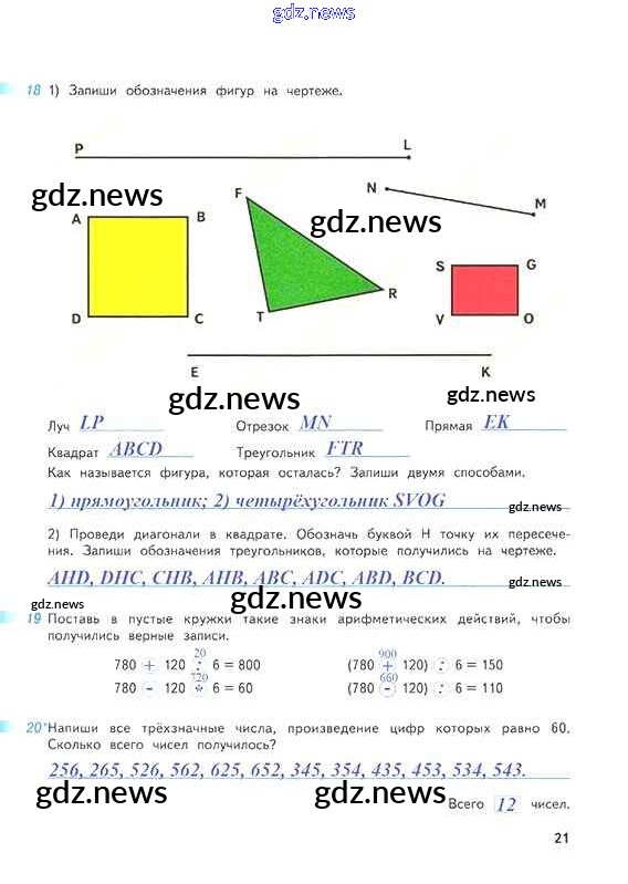 ГДЗ по Математике за 4 класс Дорофеев, Миракова Рабочая тетрадь Перспектива - Часть 1. Страницы 21