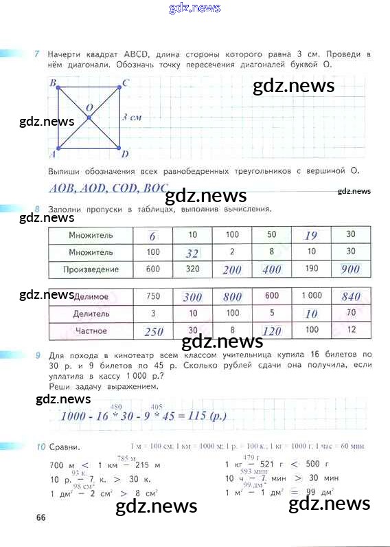 ГДЗ по Математике за 4 класс Дорофеев, Миракова Рабочая тетрадь Перспектива - Часть 1. Страницы 66