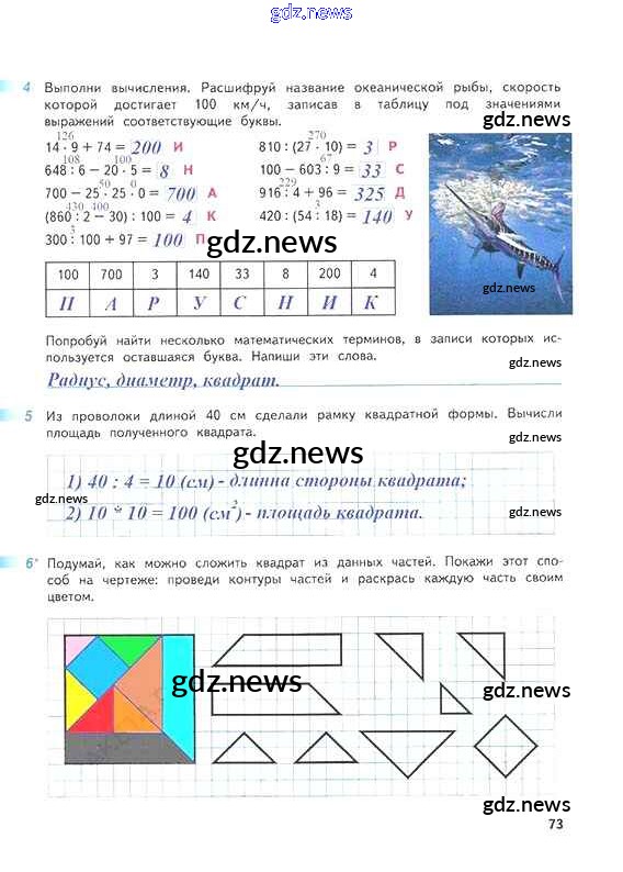 ГДЗ по Математике за 4 класс Дорофеев, Миракова Рабочая тетрадь Перспектива - Часть 1. Страницы 73