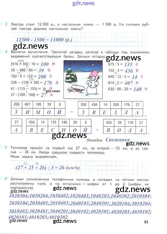 ГДЗ по Математике за 4 класс Дорофеев, Миракова Рабочая тетрадь Перспектива - Часть 1. Страницы 93