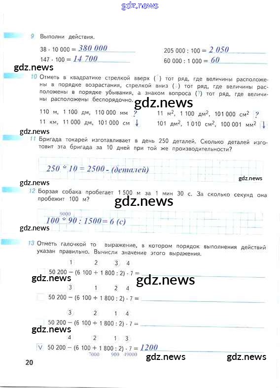 ГДЗ по Математике за 4 класс Дорофеев, Миракова Рабочая тетрадь Перспектива - Часть 2. Страницы 20