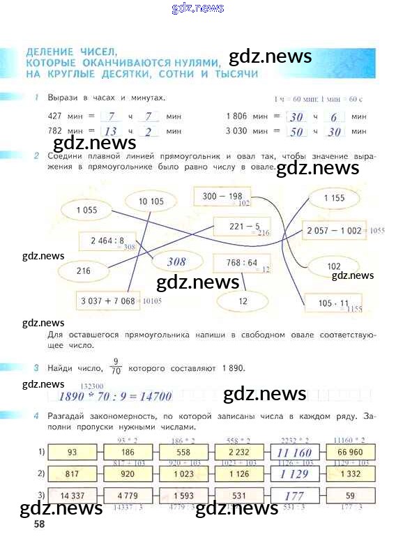 ГДЗ по Математике за 4 класс Дорофеев, Миракова Рабочая тетрадь Перспектива - Часть 2. Страницы 58