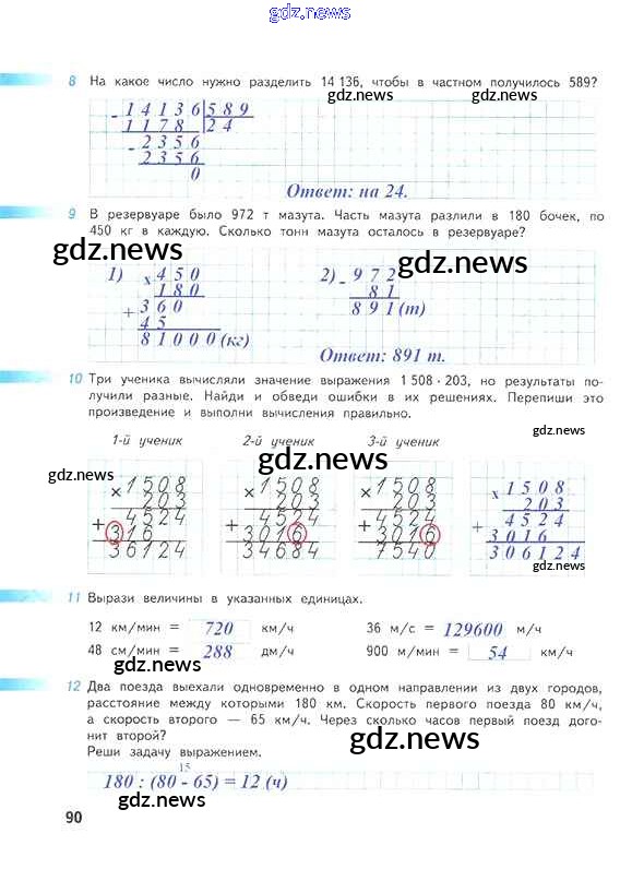 ГДЗ по Математике за 4 класс Дорофеев, Миракова Рабочая тетрадь Перспектива - Часть 2. Страницы 90