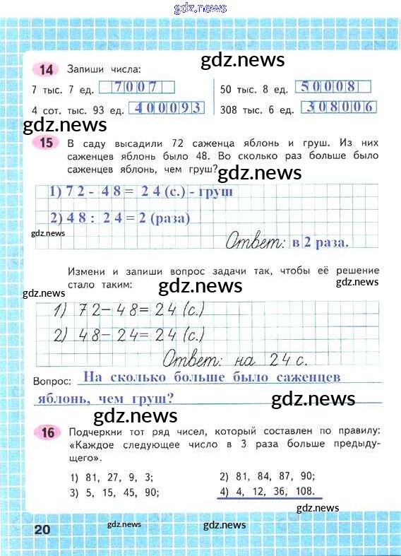 ГДЗ по Математике за 4 класс Волкова Рабочая тетрадь Школа России - Часть 1. Страницы 20