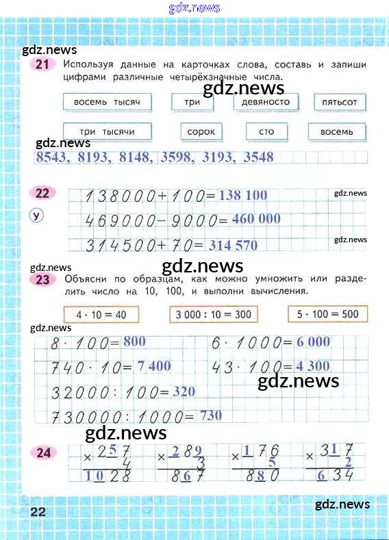 ГДЗ по Математике за 4 класс Волкова Рабочая тетрадь Школа России - Часть 1. Страницы 22