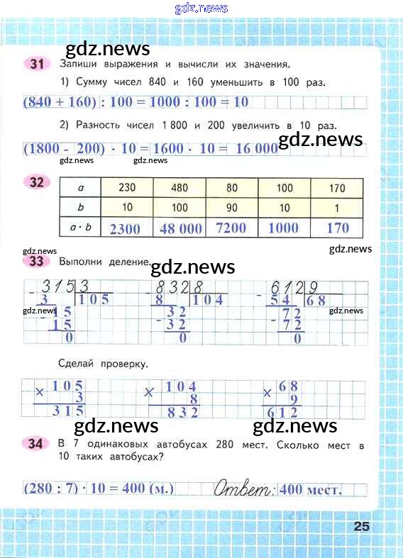 ГДЗ по Математике за 4 класс Волкова Рабочая тетрадь Школа России - Часть 1. Страницы 25