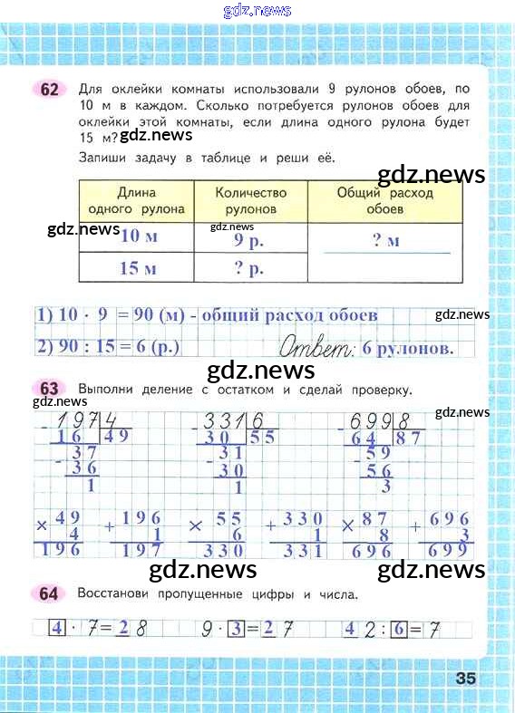 ГДЗ по Математике за 4 класс Волкова Рабочая тетрадь Школа России - Часть 1. Страницы 35