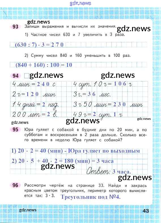 ГДЗ по Математике за 4 класс Волкова Рабочая тетрадь Школа России - Часть 1. Страницы 43